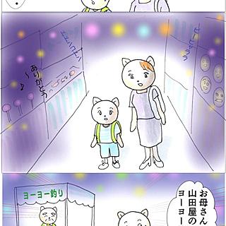4コマ漫画「こんちわ konnichi world」 です。ボウリングのピン達、すぐ寝込む猫、面接に来る謎のキャラ、喉にはりつくかっこ笑虫、音楽が異常に好きな社長など様々なキャラクターが4コマの中を所狭しと駆けまわる。4コマという名の人生活劇。