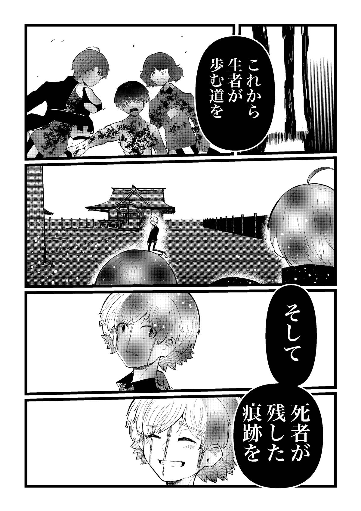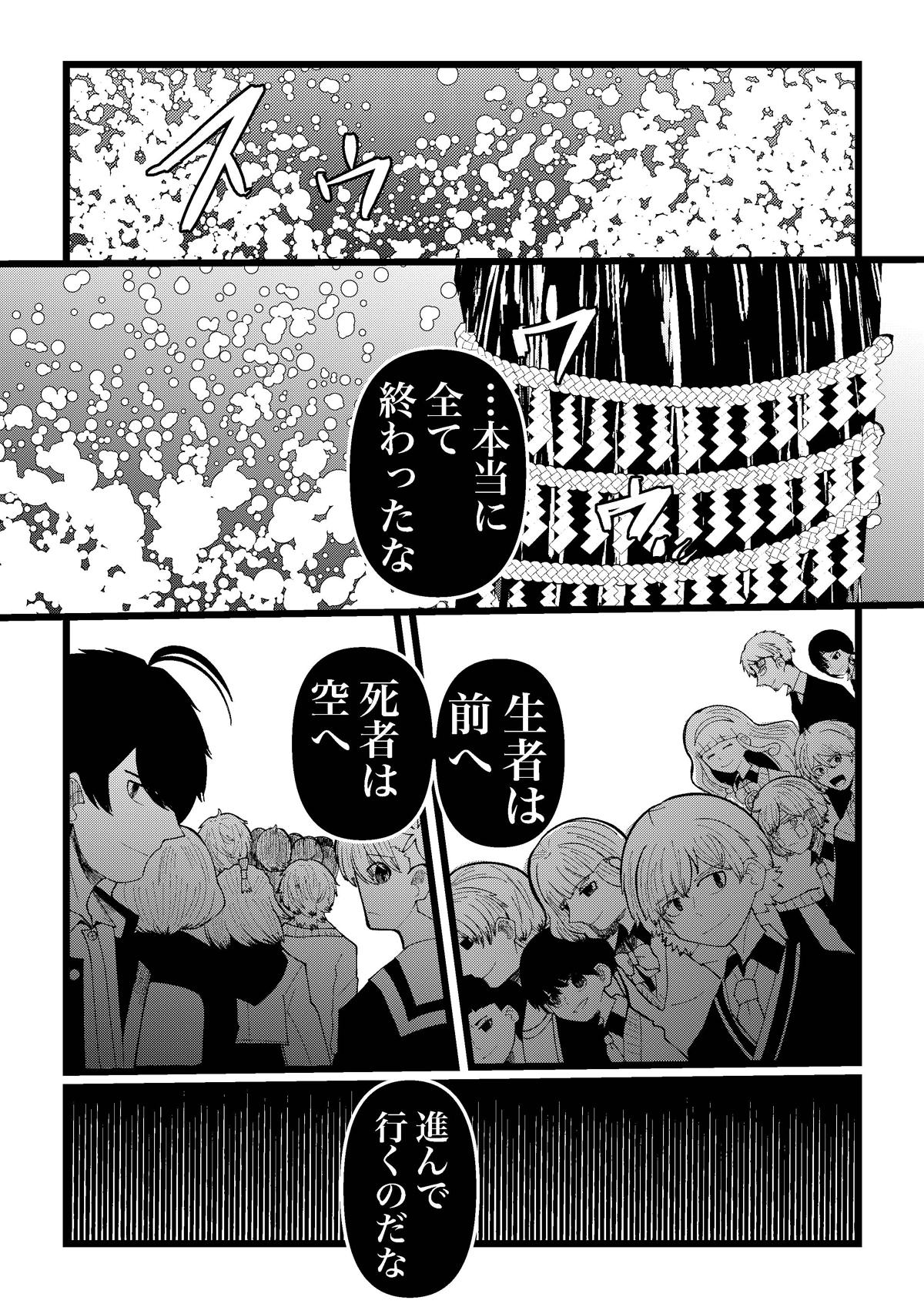 八年間本当にありがとうございました。これにて完結となります。 最後までお付き合いいただき本当にありがとうございました。 読者様のたくさんの応援のおかげでこの結末までたどり着くことができました。 この漫画が読者様の心の片隅に残ってくれれば万々歳です。 次回作は四十九ほど頻繁更新は出来なさそうですがまたよろしくお願いします。 ではまたどこかで!あるいは穴の底でお会いしましょう!