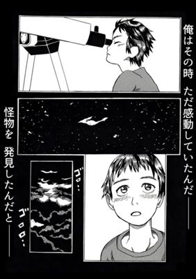 全59ページ読切です。学校にも行かず、ただ過ぎていく日々に「どうでもいい」と呟く文人。そんな文人を更生させようと毎日奮闘する望晴。ある日二人は偶然に巨大な大砲を発見する。大砲の謎を知る宇宙人に導かれ、幼いころに望遠鏡を覗き込んだ記憶にたどり着く。そして二人は、世界の危機を救う選択を迫られる…!
