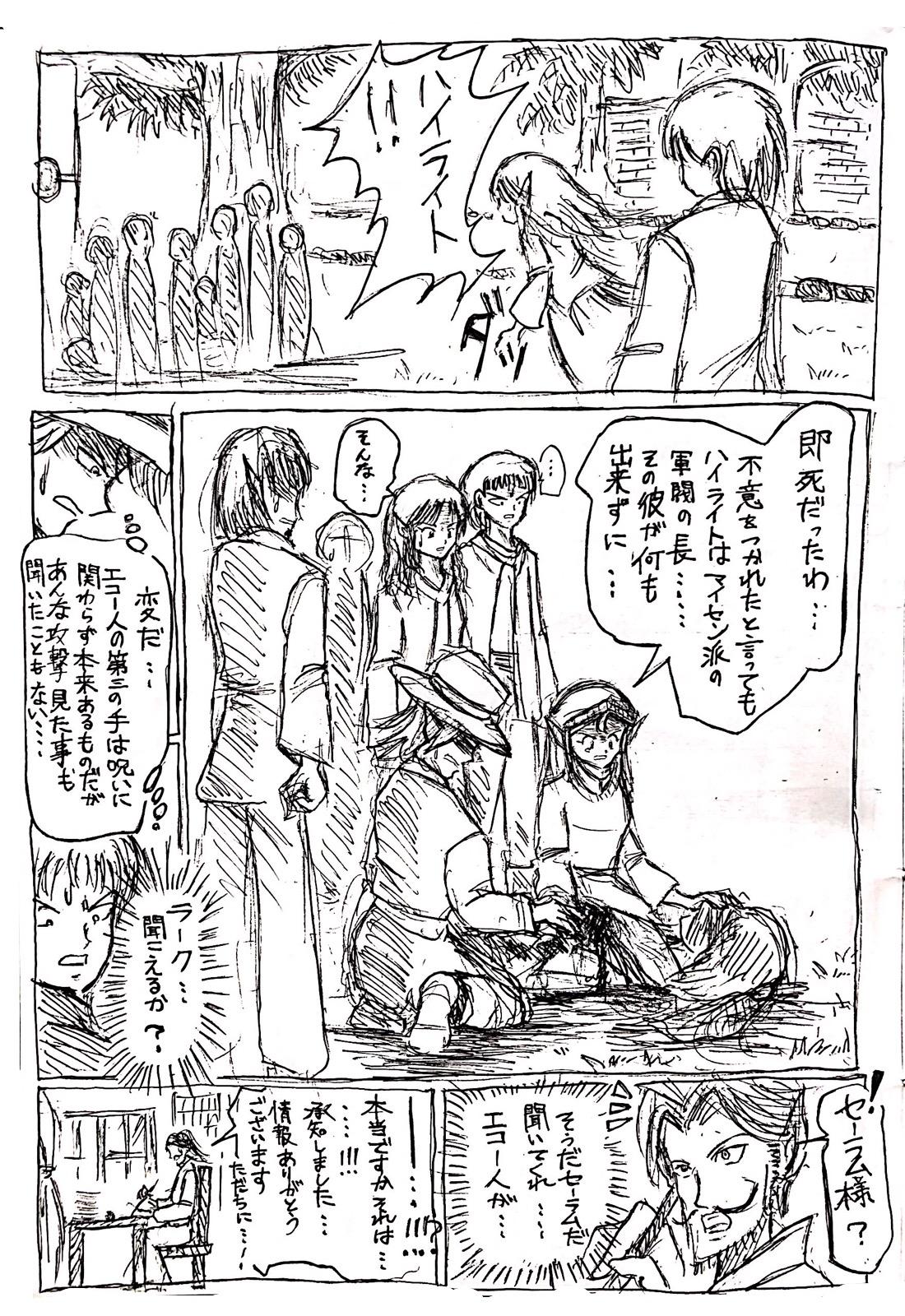 セリフだらけで本当にすみません…。要は城内の人々とエコー人は冷戦中という事で、細かい部分は特に本編とまだ直接深く関わってこない、設定の会話が多いので、雰囲気で読んでくださっても大丈夫です。