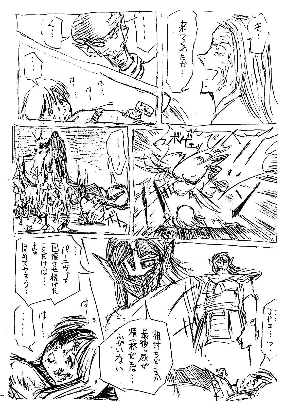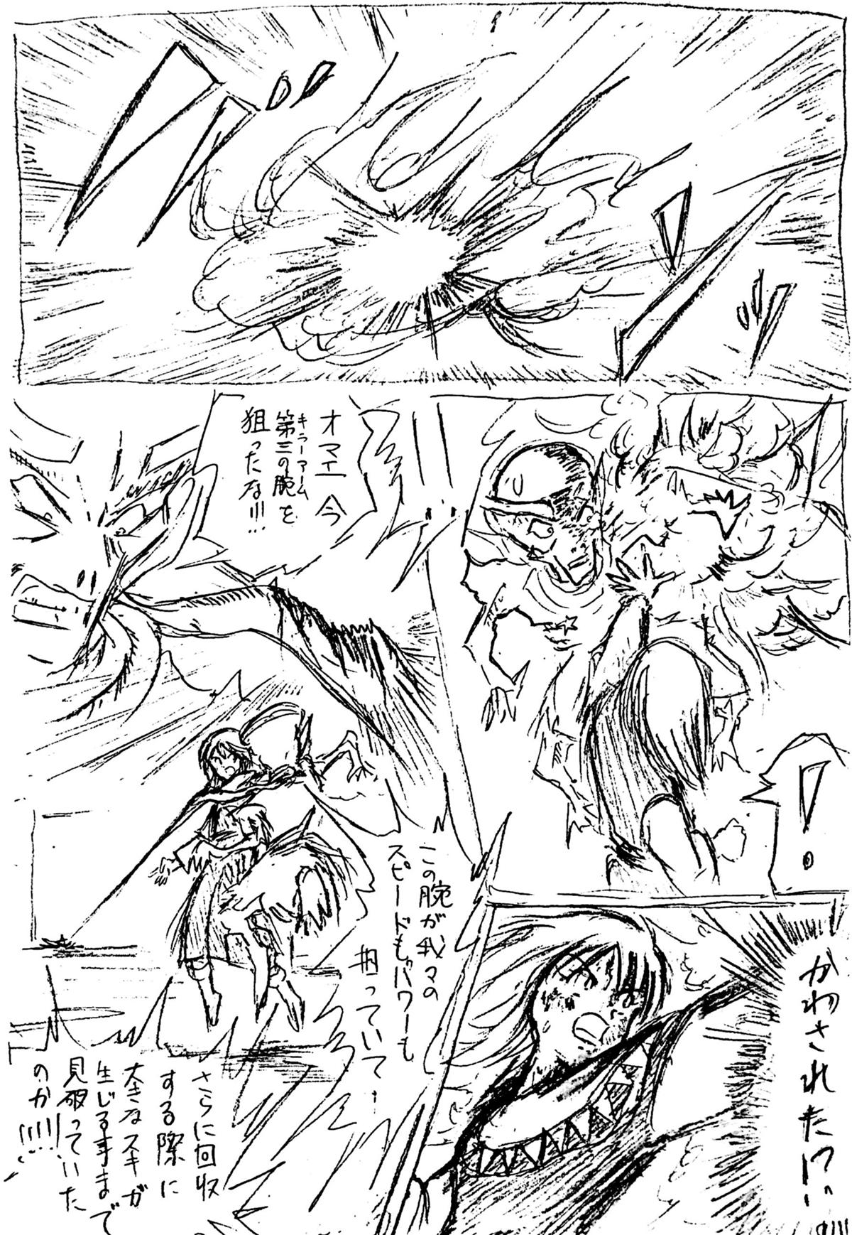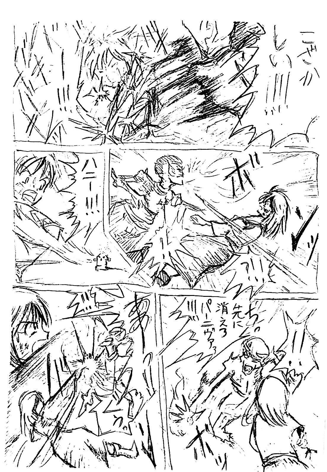 最初みんなでゆるく始めた流れで、この頃はまだこの手のシーンでもフリーハンド効果線ですが、だんだん定…