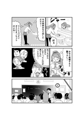 授業中トイレに行きたいけど行けない辛さを描きます。過敏性腸症候群に悩む男女が主人公です。
