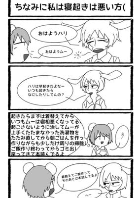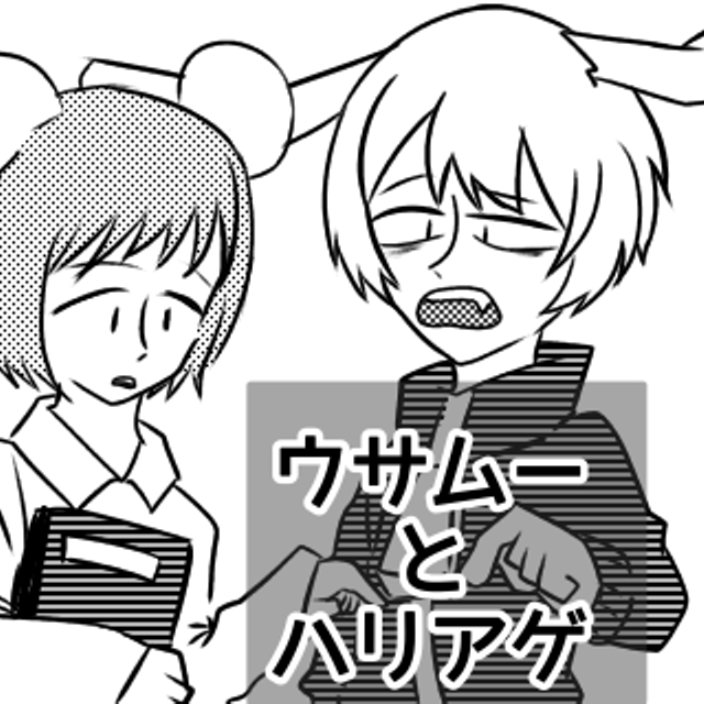 兎の子ウサムーとハリネズミの子ハリアゲの日常四コマ漫画です。1日1~2枚を基準に書いていきます