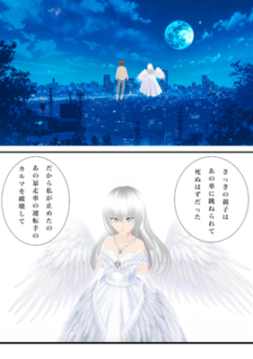 人は生まれ変わりを繰り返し過去世での罪を引き継いで生まれてくる それをカルマという カルマは同じ罪をお互いが体験し合うことで解消されるらしい 簡単に言えば過去世で他者の命を奪った者は今世で他者に命を奪われるということだ 天使はその人間のカルマを破壊することで、今世で過去世のカルマと干渉し合わないようにして人を救っていた