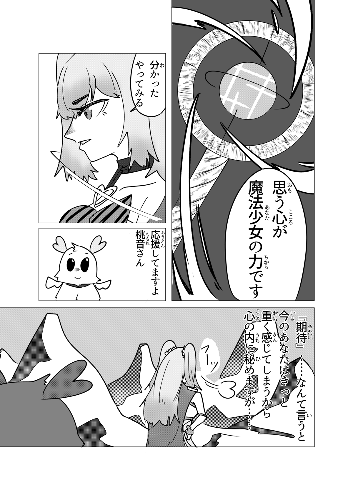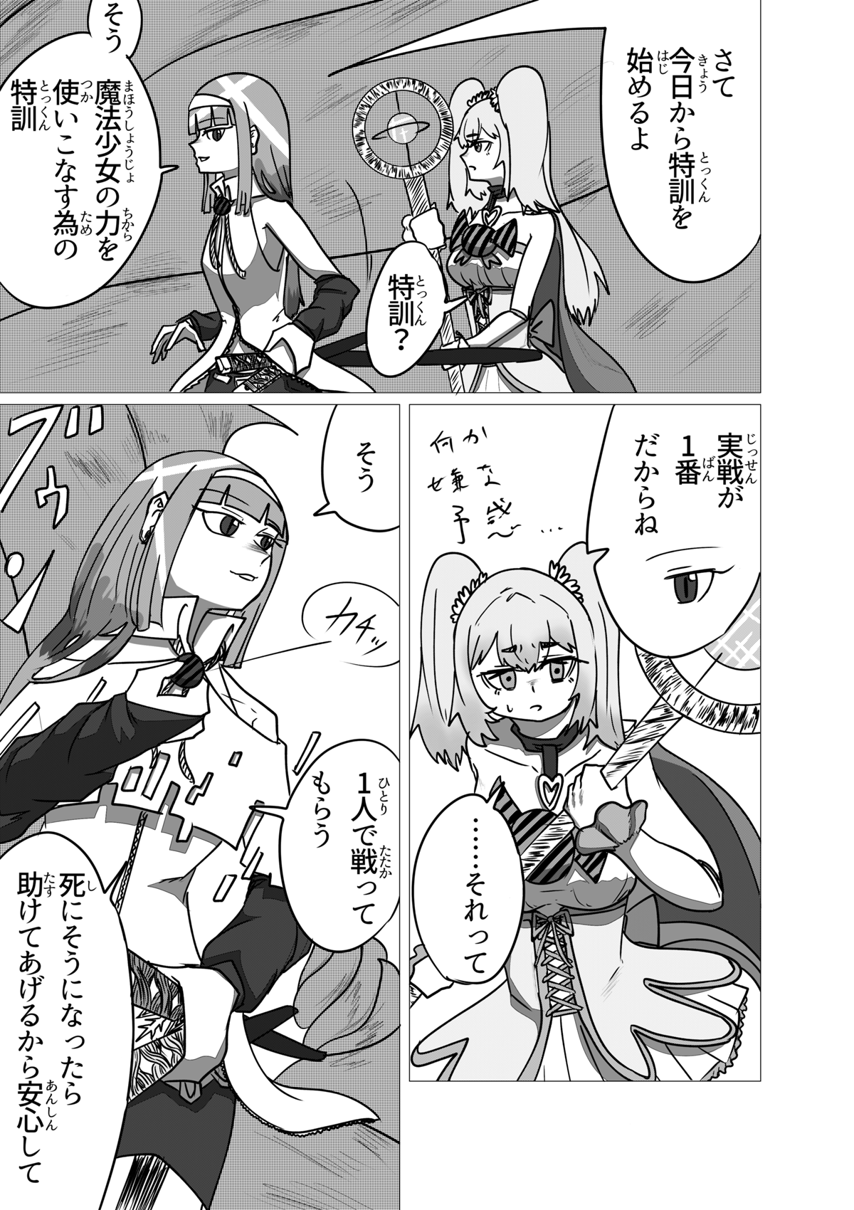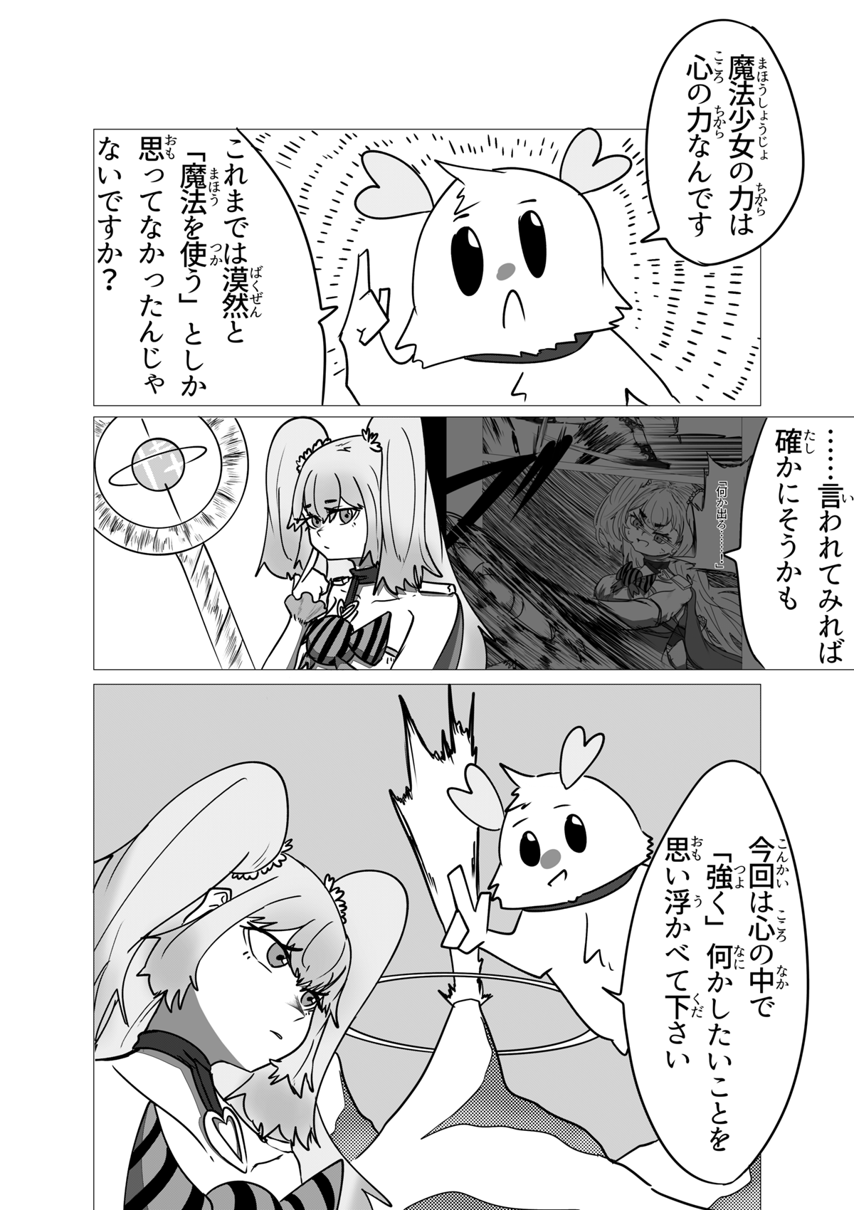 この作品は「少年漫画とかスポーツ漫画みたいな熱さを魔法少女ものでやってみてぇ」という至極単純な動機から始まった漫画です。 他に前例そんなにないんじゃないかと思ってましたが、プリキュアがもろにそれでしたね。 灯台もと暗し。 しかし作家性と言うにはおこがましいですが、話を作る時のクセはすぐに抜けなくて、ちょっとだけダークな要素や展開も入ってきています……。 しかし前作と違い毎話必ず死体が映ってるとかそういうのは無いです。 少年漫画向けにチューニングしたので。 さて、それでは余談はここまでに引き続き、当作をお楽しみ頂けたなら幸いですm(*_ _)m