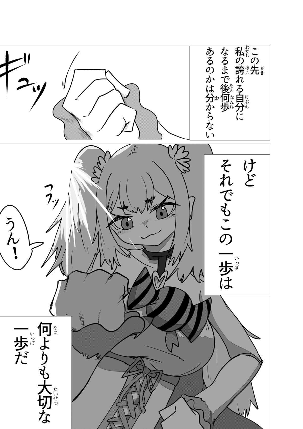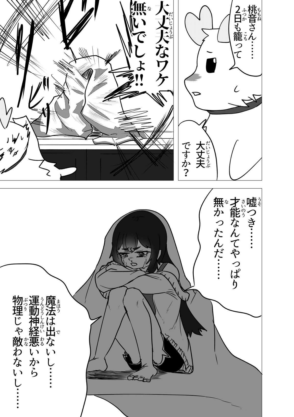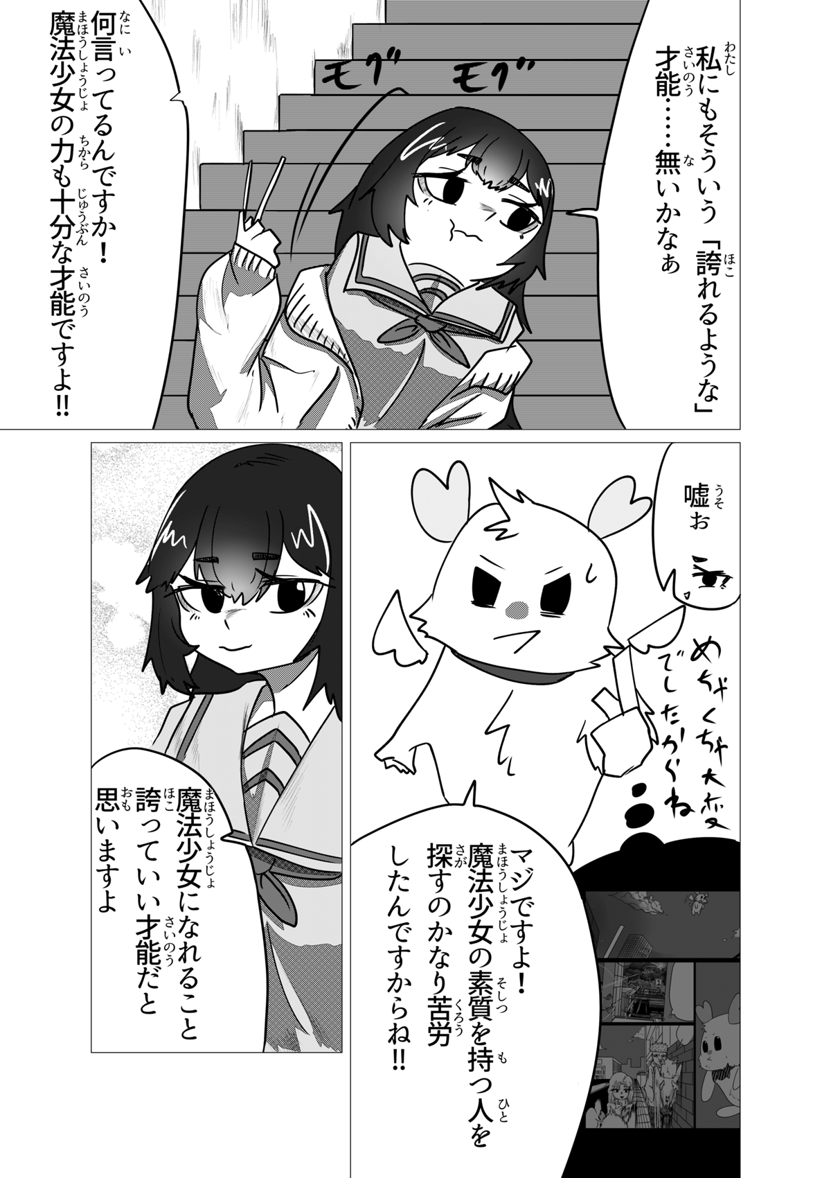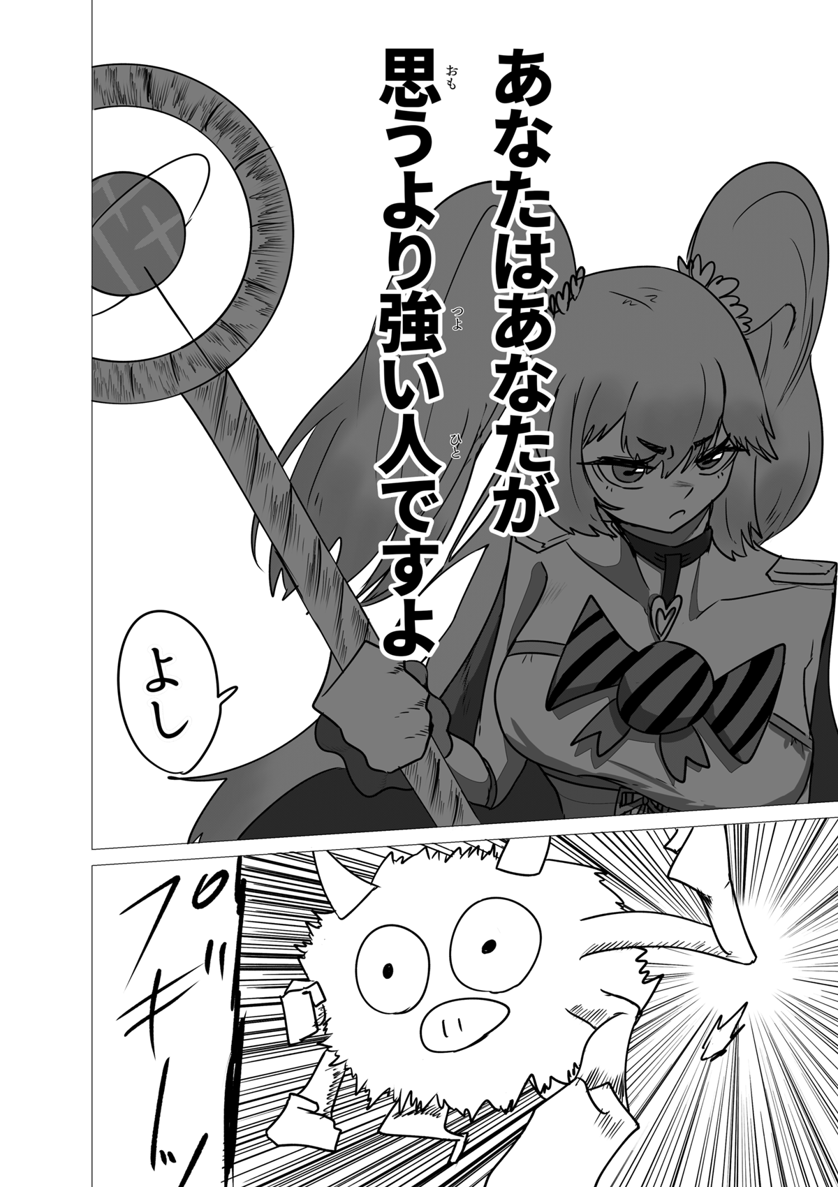 この作品は「少年漫画とかスポーツ漫画みたいな熱さを魔法少女ものでやってみてぇ」という至極単純な動機から始まった漫画です。 他に前例そんなにないんじゃないかと思ってましたが、プリキュアがもろにそれでしたね。 灯台もと暗し。 しかし作家性と言うにはおこがましいですが、話を作る時のクセはすぐに抜けなくて、ちょっとだけダークな要素や展開も入ってきています……。 しかし前作と違い毎話必ず死体が映ってるとかそういうのは無いです。 少年漫画向けにチューニングしたので。 さて、それでは余談はここまでに引き続き、当作をお楽しみ頂けたなら幸いですm(*_ _)m