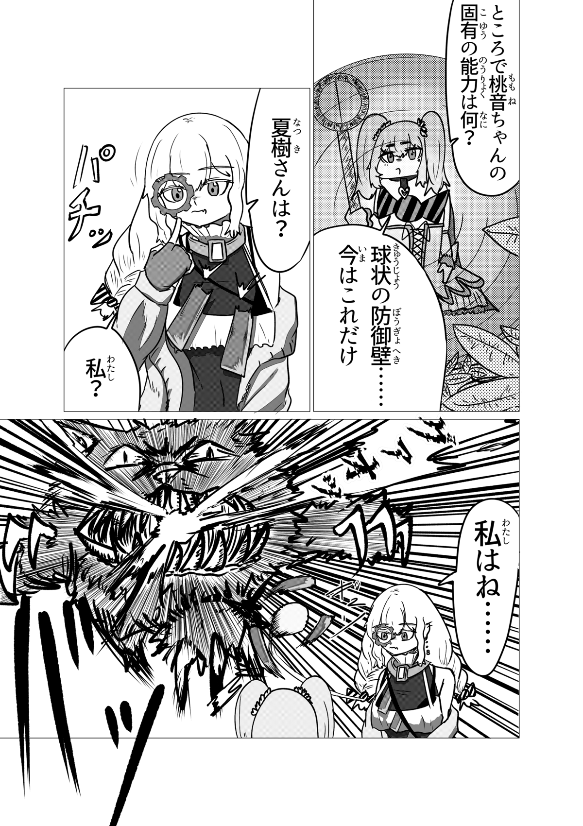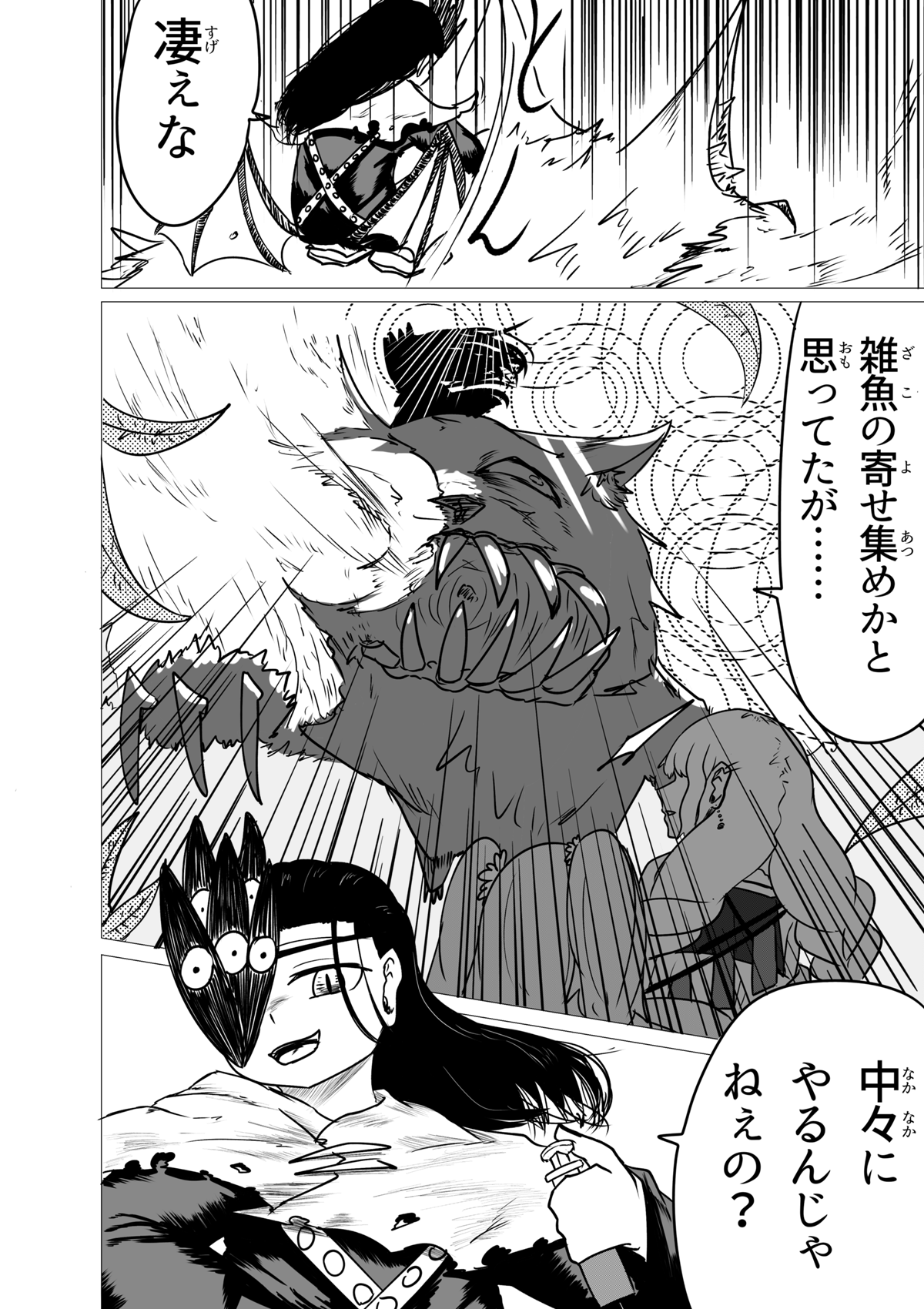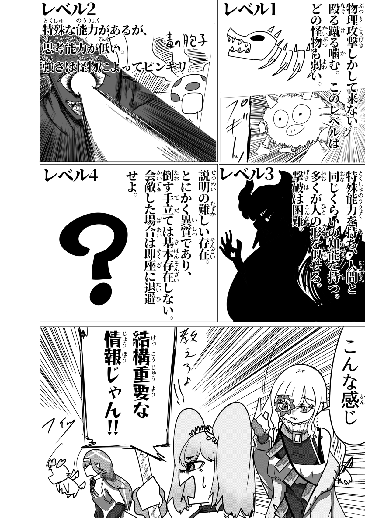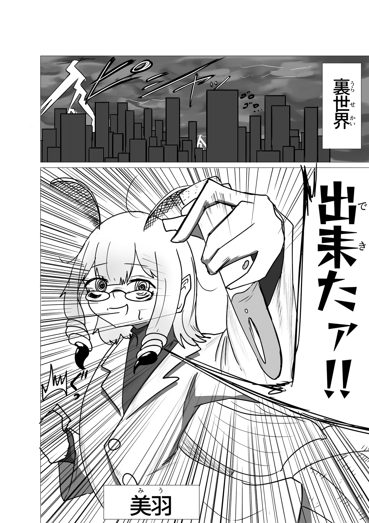 いぇーい!3人目登場! これにて所謂「初期メン」が揃いました! ちょっと今回は話の軸が多くて申し訳ないです💦 前作の4話宜しく、どうしても章の転換点の回にいくつもの軸の「起」の部分を見せたがりがちなんですよね。 主人公が太眉ジト目だったり味方に190cm代の高い女がいたりと共通点があり、なんか好みが透けててヤですな。 さて、これにて本日更新分が終了した訳ですが、しばらくは当作週1で更新がされます。 なのでまた来週会いましょう!