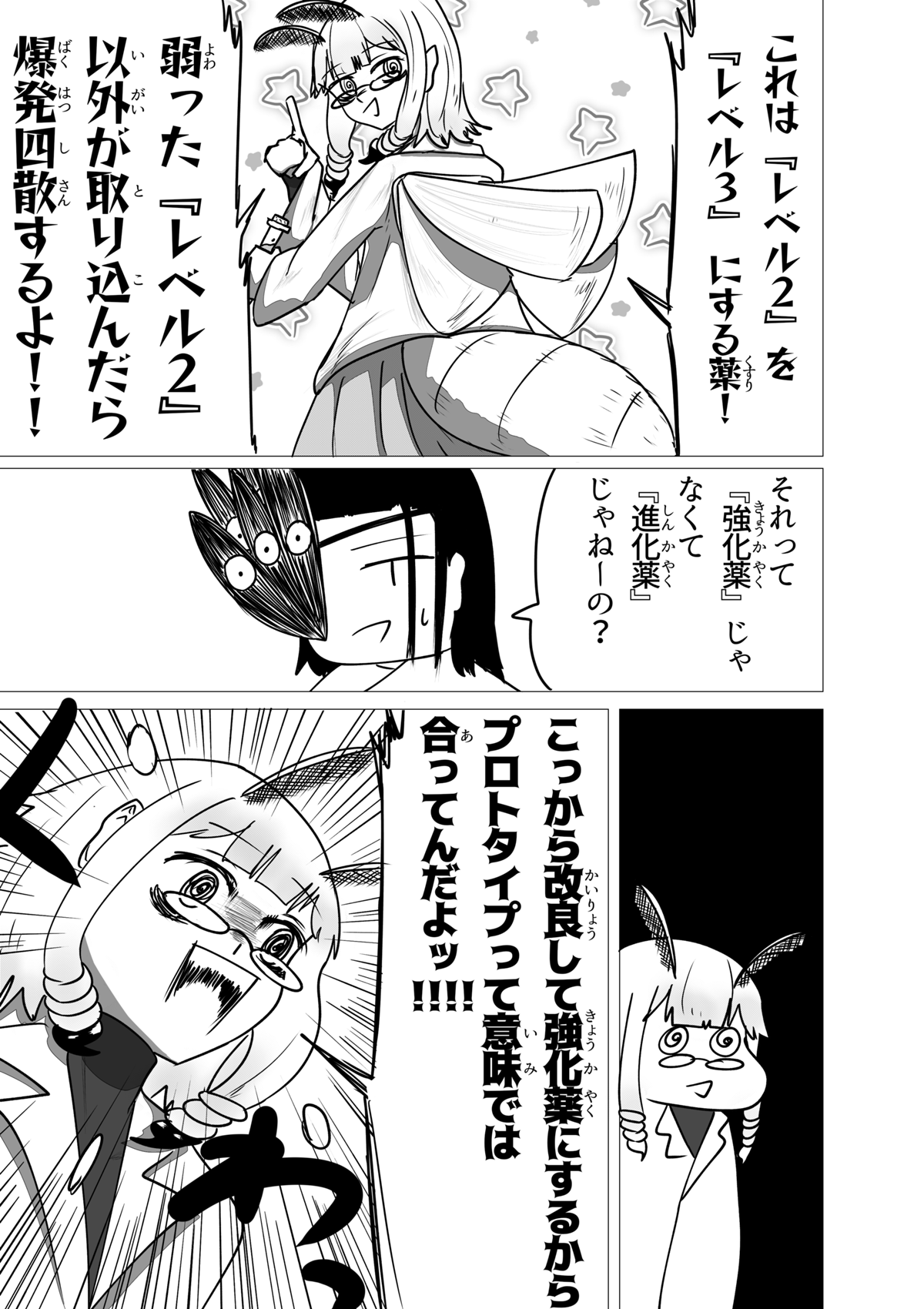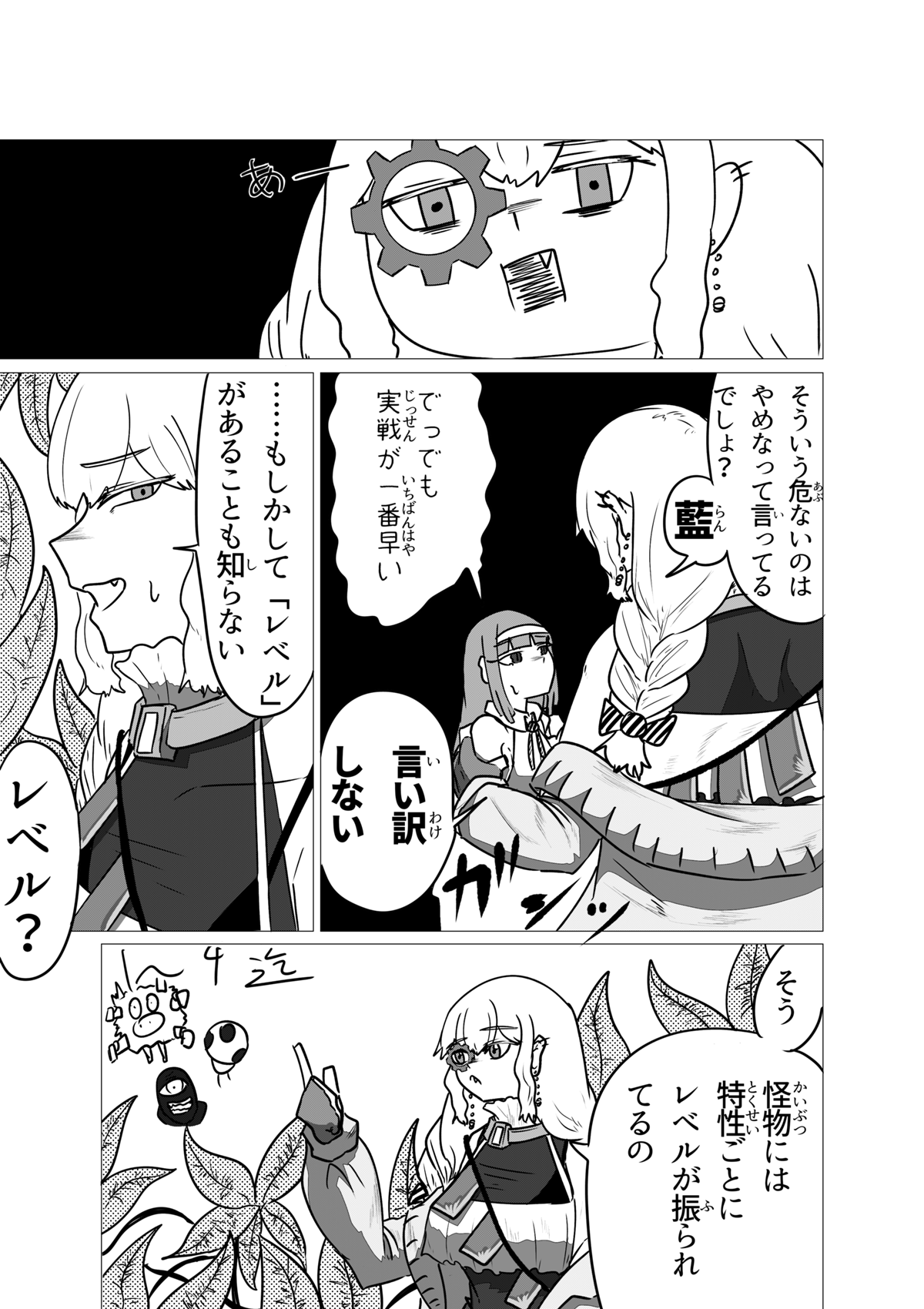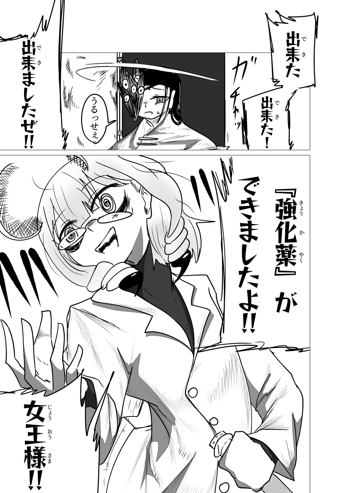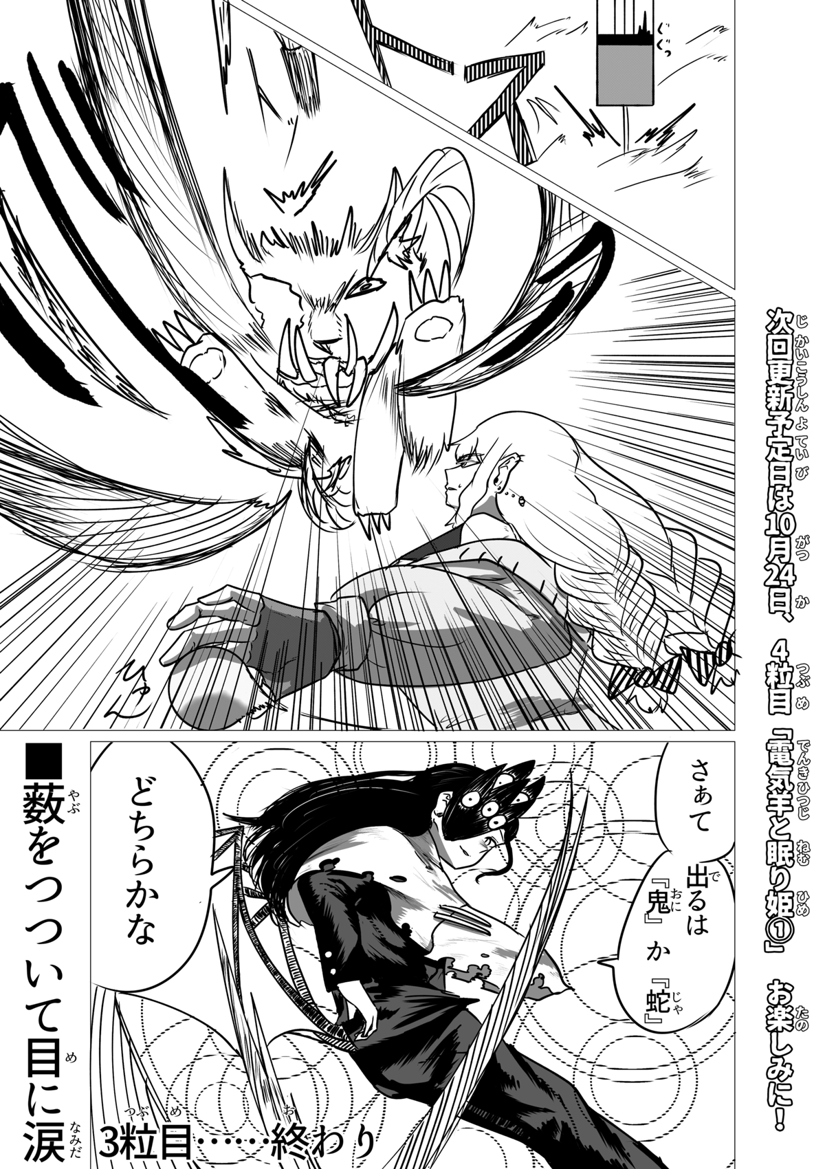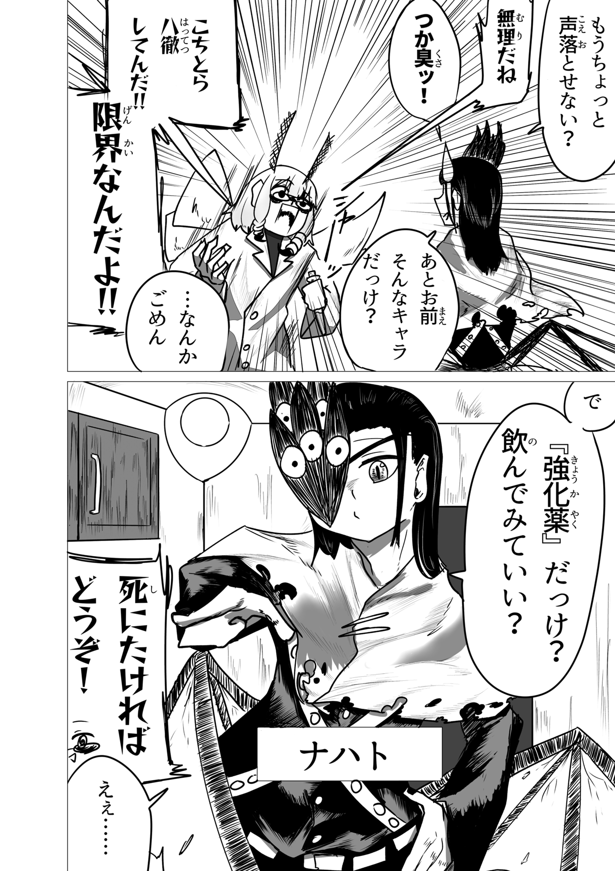 いぇーい!3人目登場! これにて所謂「初期メン」が揃いました! ちょっと今回は話の軸が多くて申し訳ないです💦 前作の4話宜しく、どうしても章の転換点の回にいくつもの軸の「起」の部分を見せたがりがちなんですよね。 主人公が太眉ジト目だったり味方に190cm代の高い女がいたりと共通点があり、なんか好みが透けててヤですな。 さて、これにて本日更新分が終了した訳ですが、しばらくは当作週1で更新がされます。 なのでまた来週会いましょう!