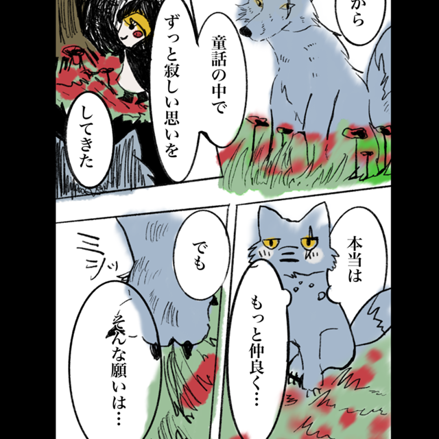 苦いけど、ほかほかする話です。 赤ずきんの童話を元に描きました。