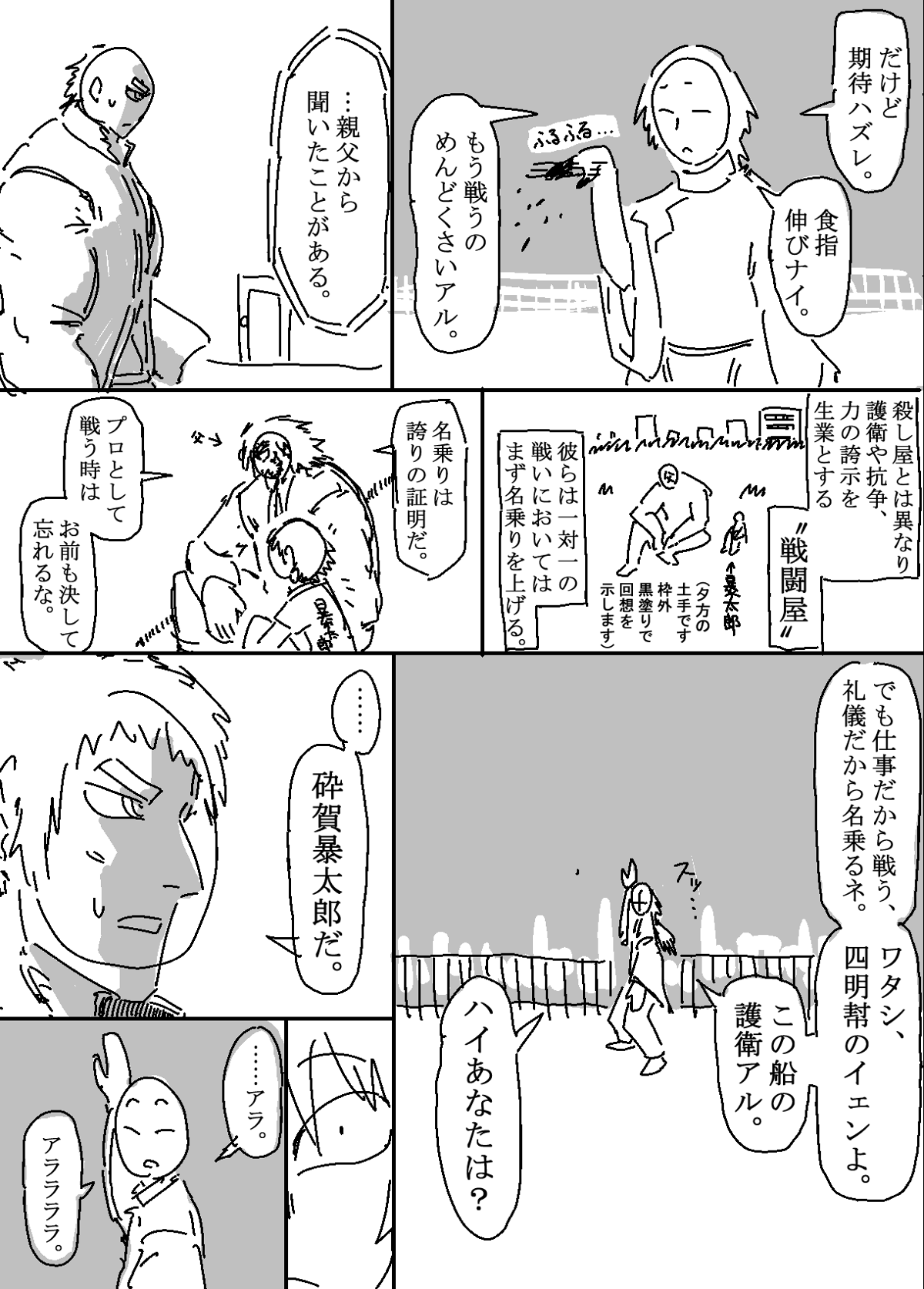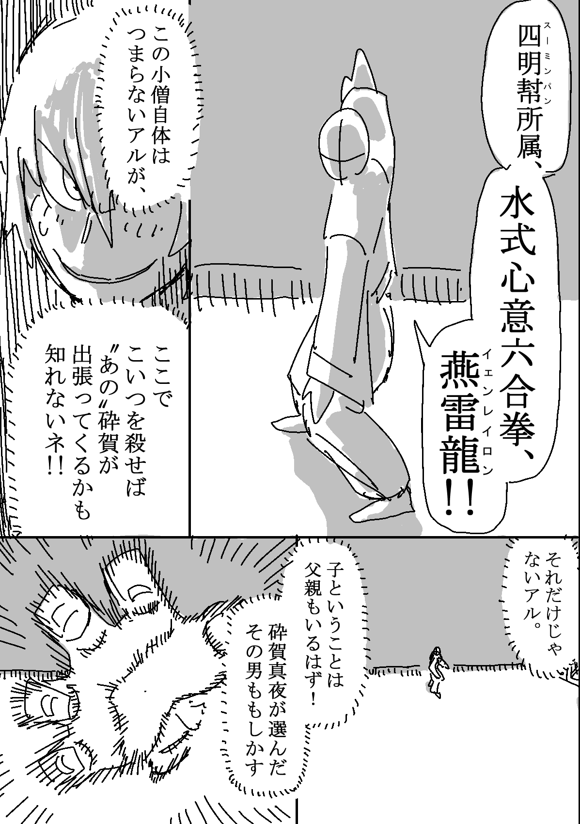 数年前に格闘シーンと中国人キャラを描きたくて描いた読み切りネームです。