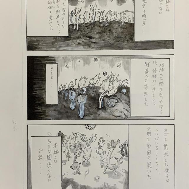野菜がフライパンでテニスをするシュールな話です もう少しネームを綺麗にすれば、読みやすかったですが、申し訳ありません。ちょっと甘かったです