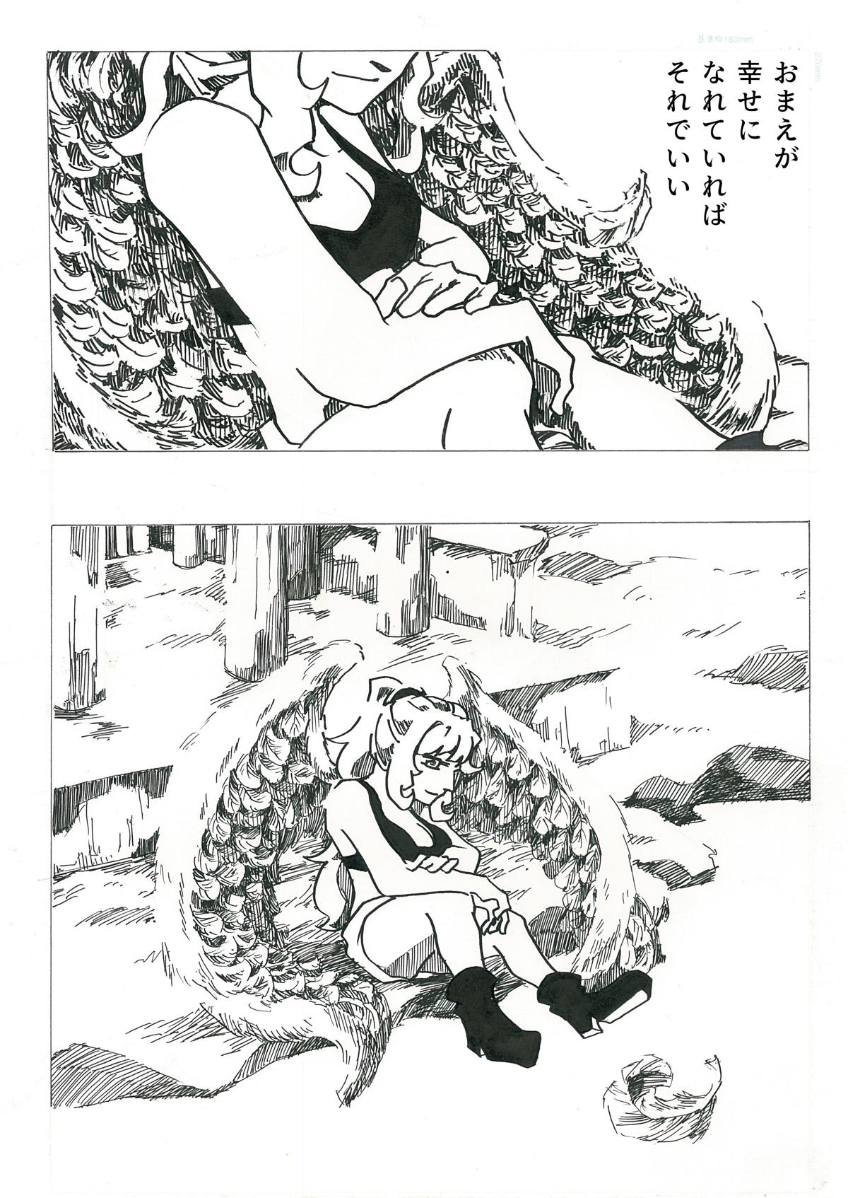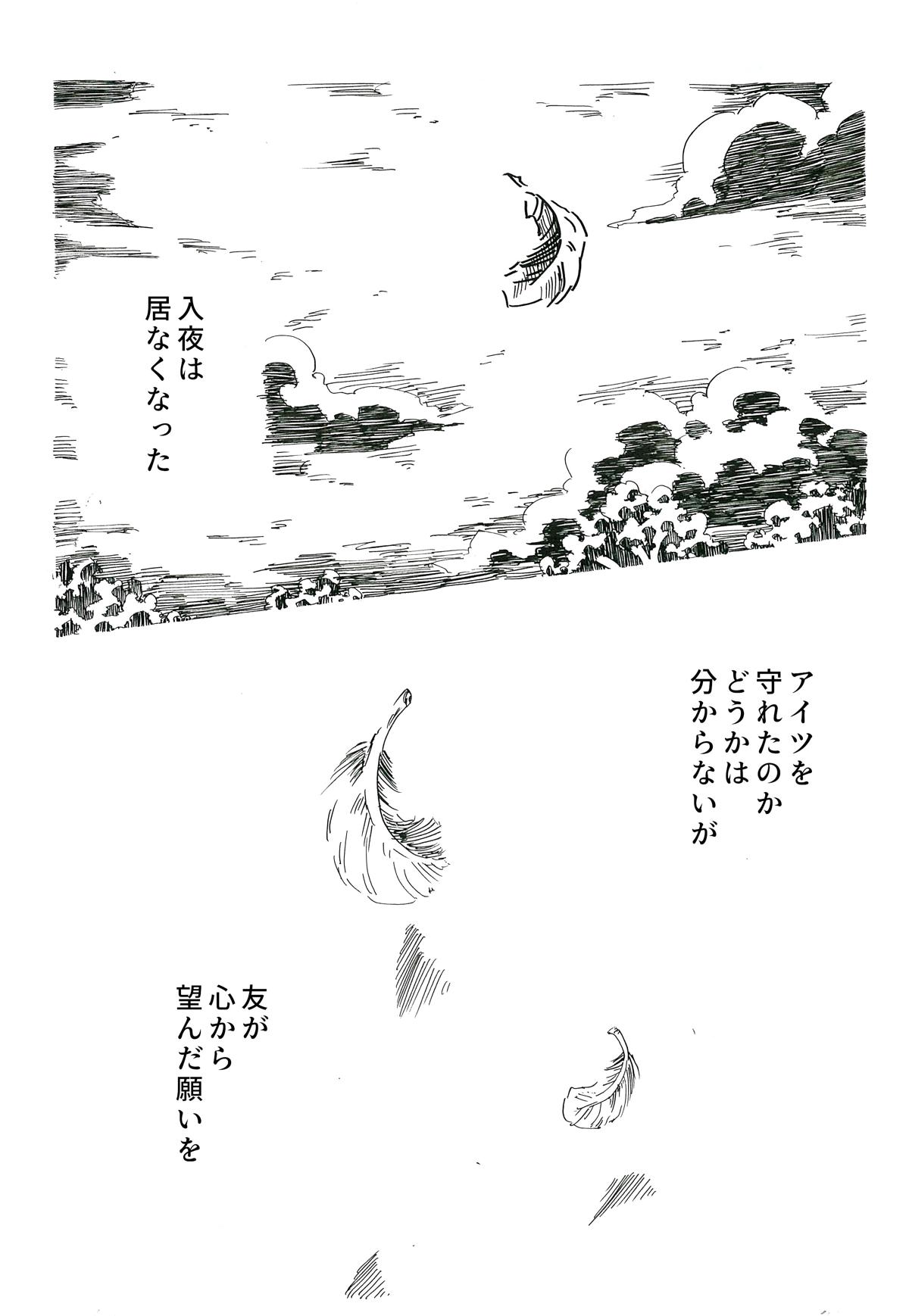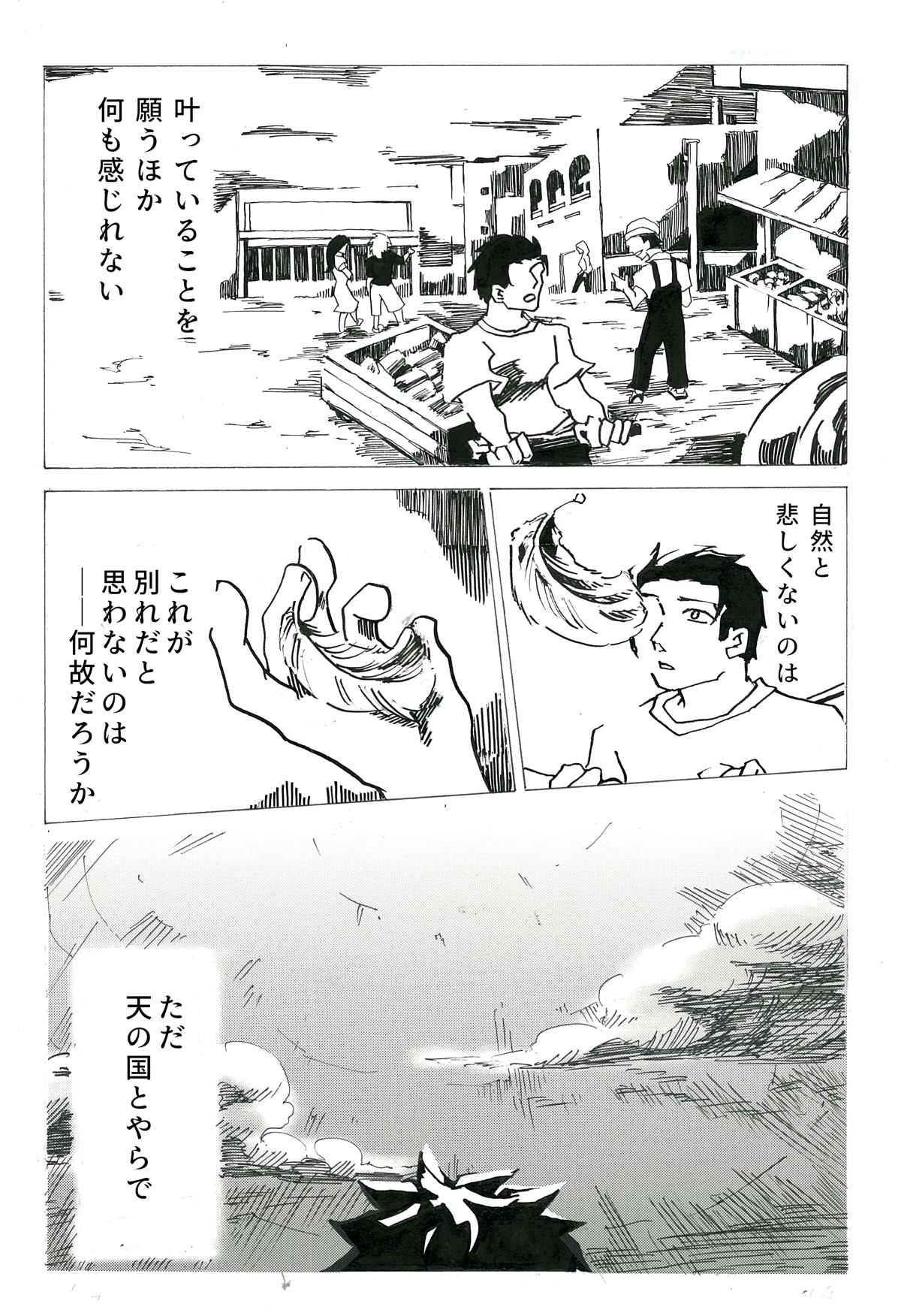 読んでいただきありがとうございました。 この作品自体は3年ほど前に完成していたのですが、ページが抜けており投稿しそびれていました。 そのため自分でも未熟な点が多いと感じています。当時は太い線が好きだったのですが、「見にくい」と一蹴され考えを変えるキッカケになった作品です。