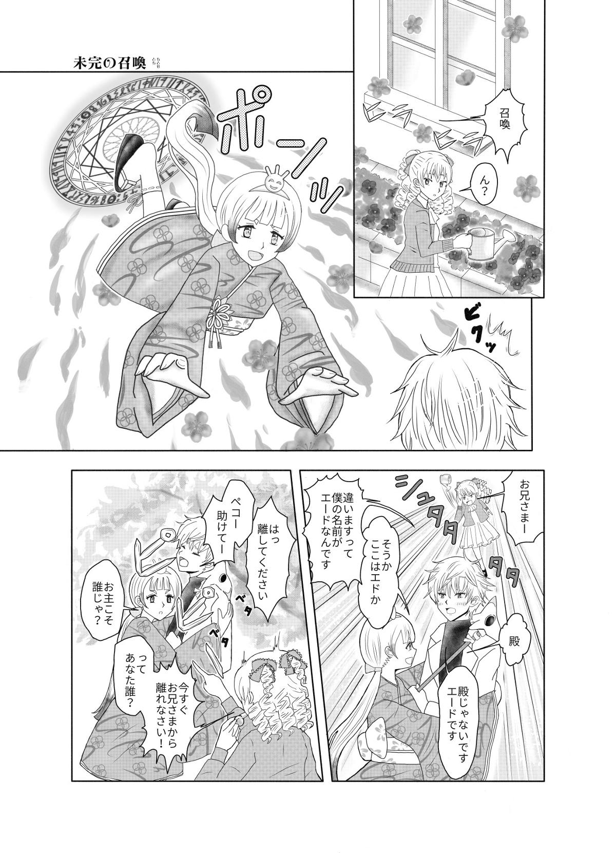 未完の召喚 姫召喚 妹ペコーが見ていない間に、召喚魔法を使う兄のエード。 こっそり召喚し…