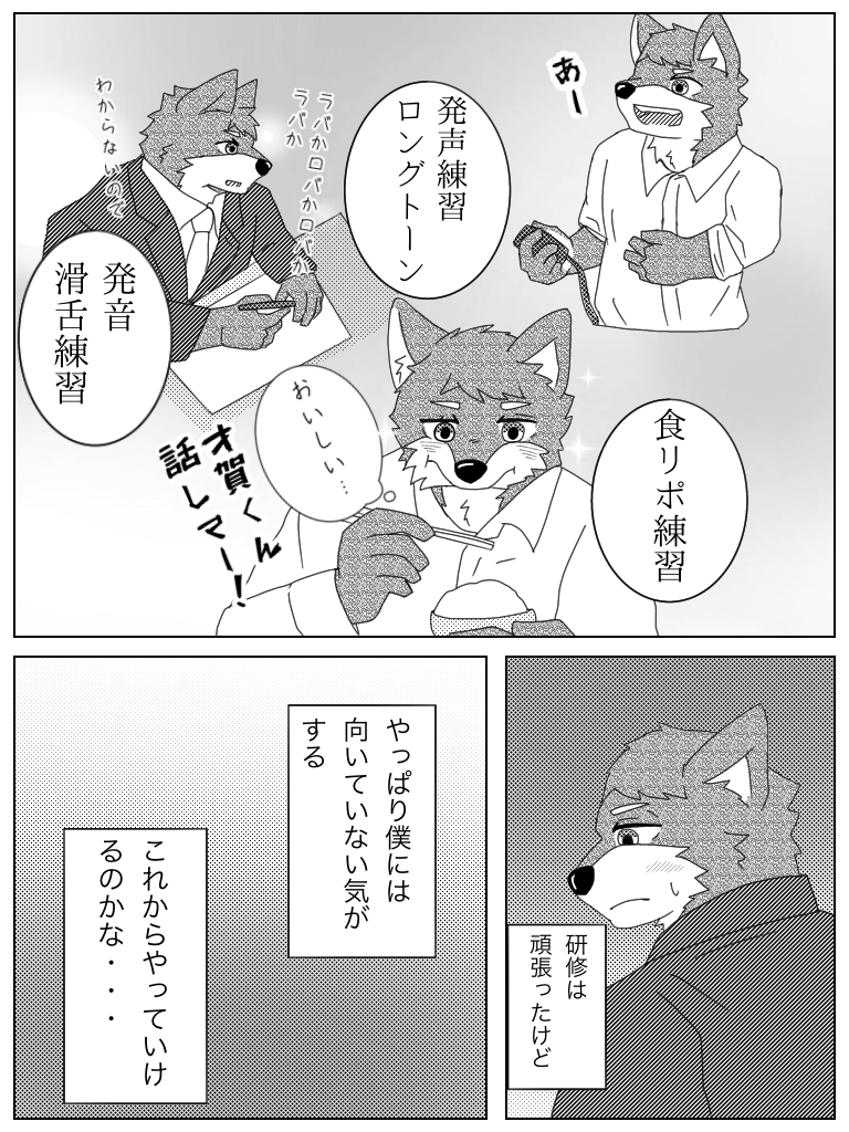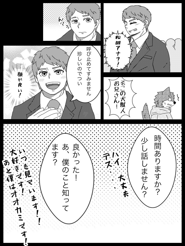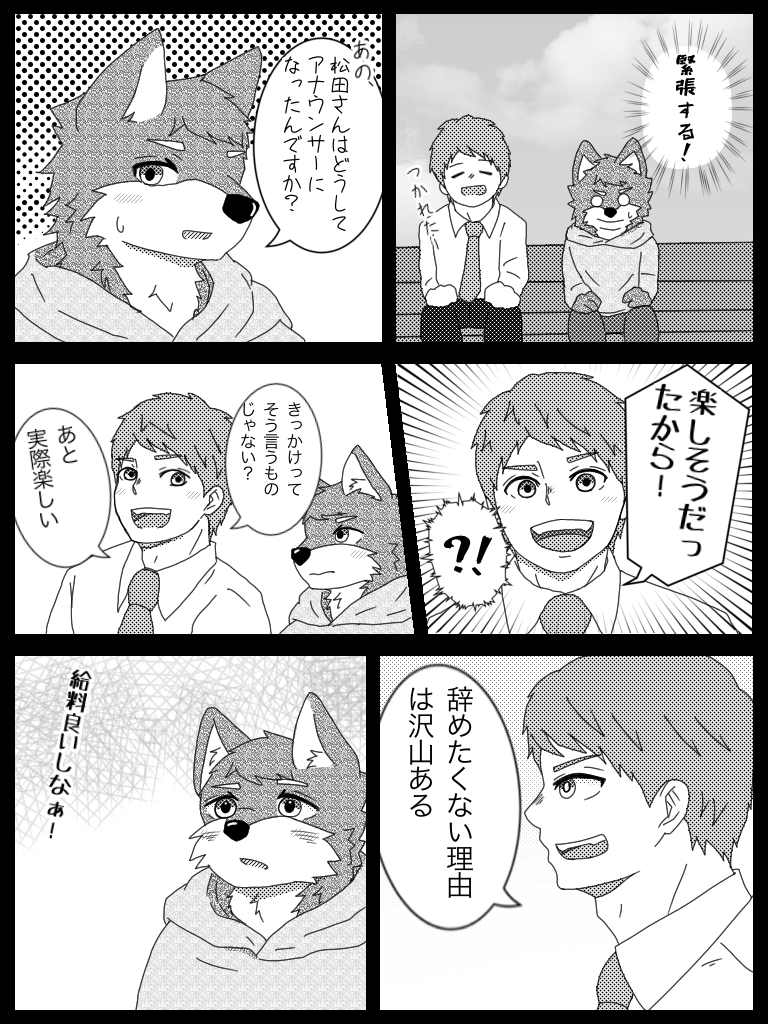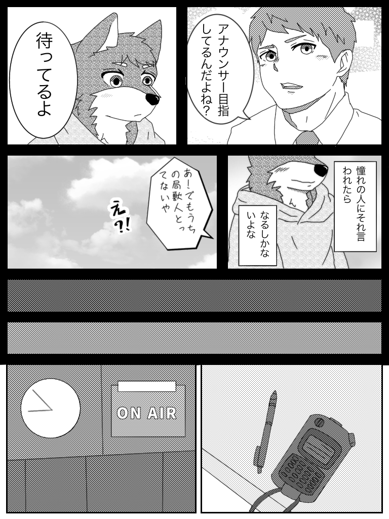 狼の初鳴き リメイク 加藤は1ページ3コマ目、8ページ6コマ目、10ページ3コマ目の人 横のクマ獣人は気象予報士の熊谷さん