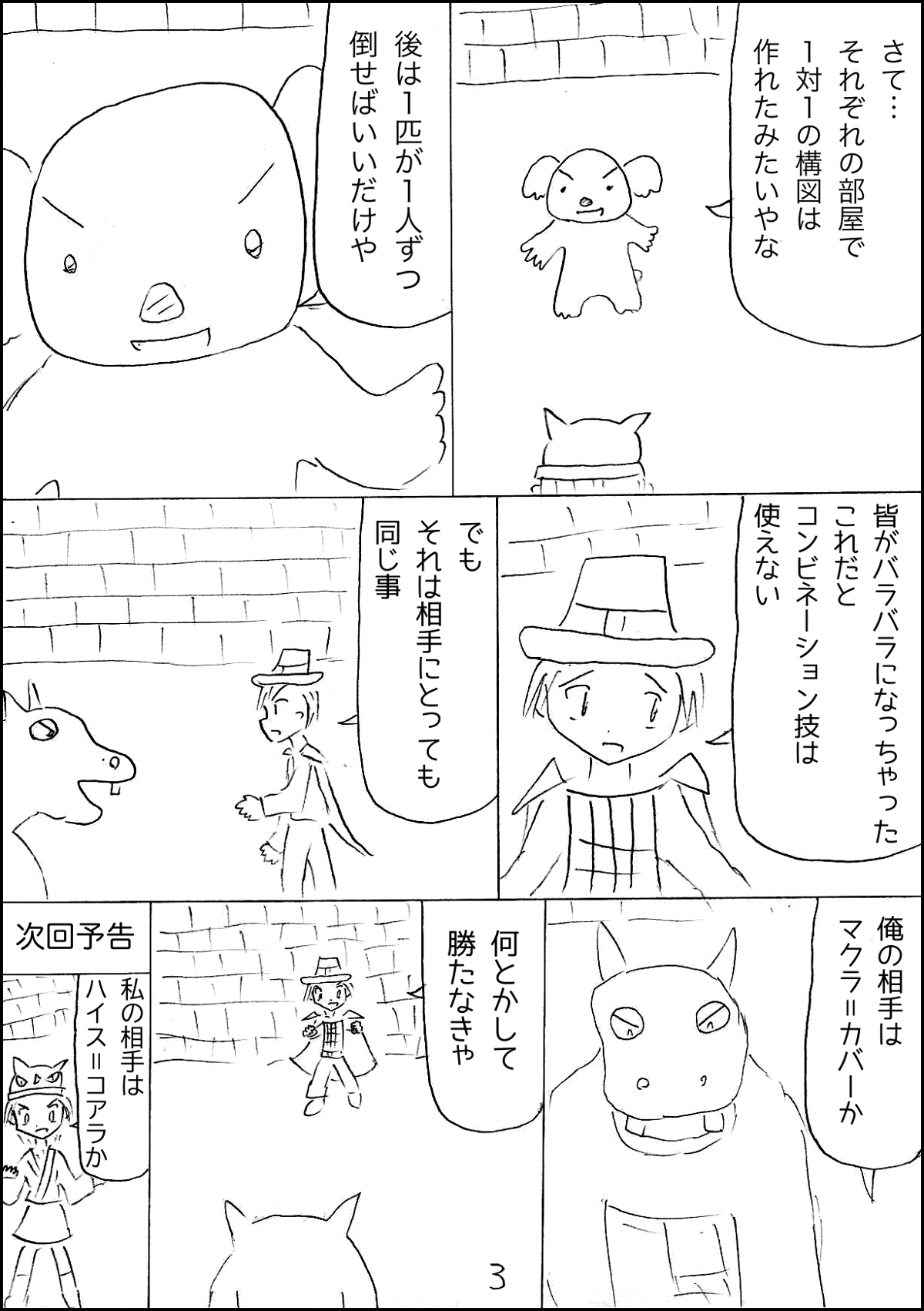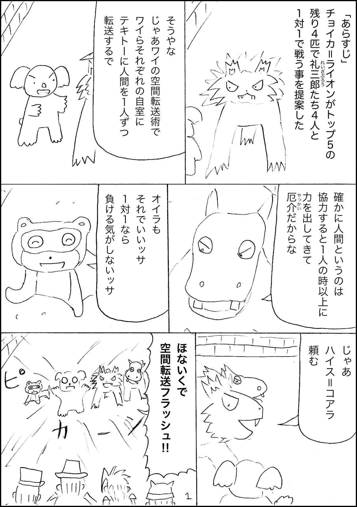 礼三郎たち4人とトップ5の残り4匹の1対1のバトルに!皆頑張れ!