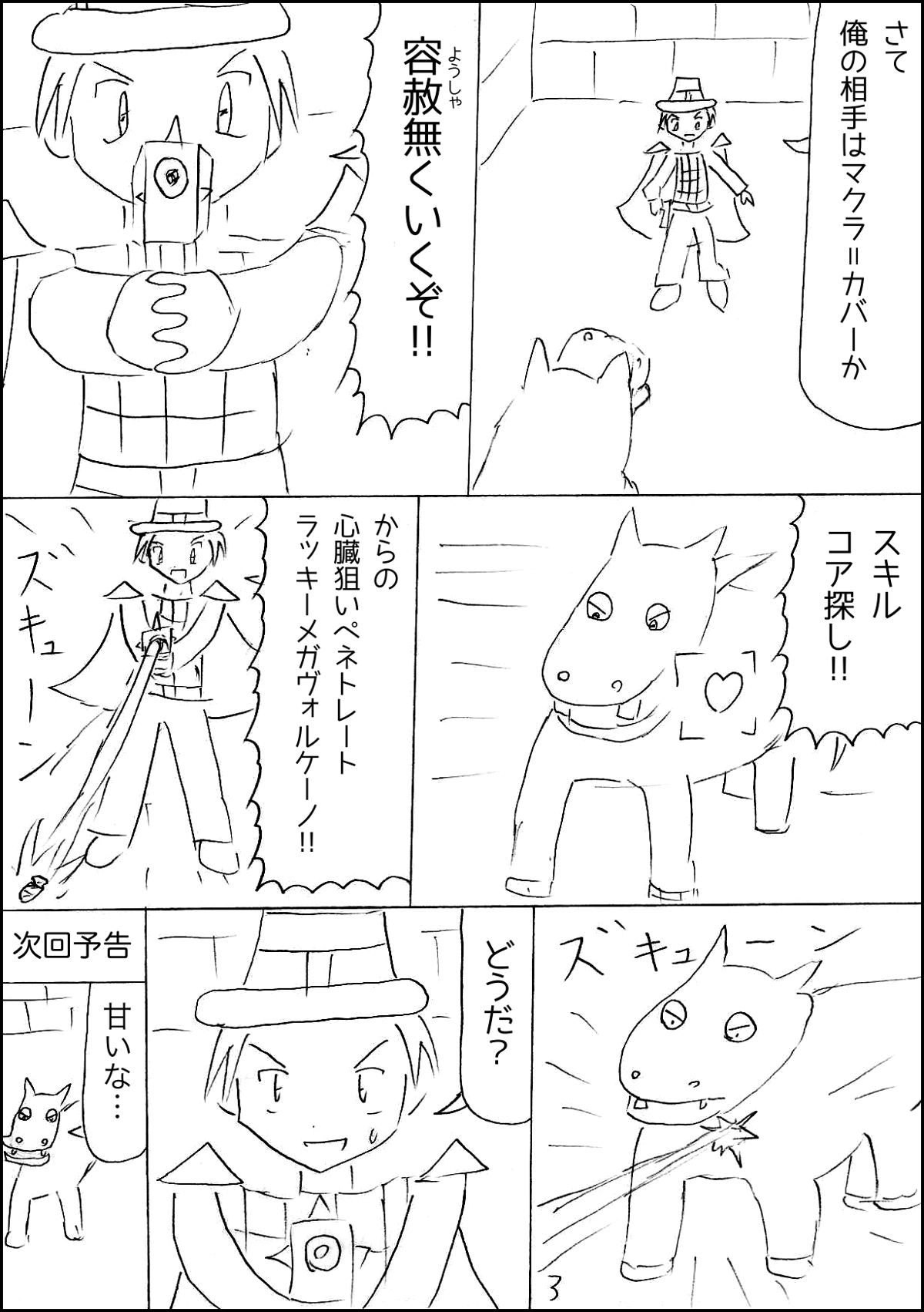 ピューイさんレベルアップ!さぁ次は礼三郎VSマクラ=カバーの戦いです!いつも読んで下さる方々、ありがとうございます。僕は人に読んでもらう為に投稿しているので、できるだけ読みやすい漫画になるように配慮しているつもりです。